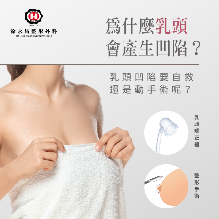 飽滿好看的胸型是許多女性追求的目標,雖然乳頭長期被內衣包覆並不會外露,但是對於乳頭的美觀外表,仍是有些人心裡的痛,除此之外,凹陷的乳頭不僅外觀不佳,更有可能影響日常生活,如日後的哺乳,以及平時清潔困難,讓污垢藏那之中,更容易產生感染發炎等問題,而在面臨乳頭凹陷的患者,有辦法自救嗎?如果不能自救又該怎麼處理呢?整形外科徐永昌醫師今天就來為你解惑。