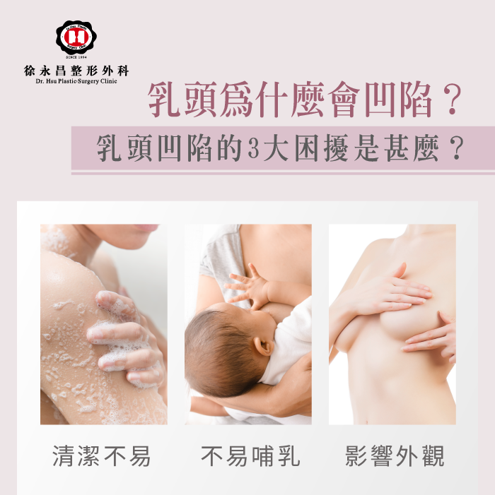 乳頭的凹陷,在日常的清潔當中無法仔細沖洗,長年累積下來會容易在乳頭處藏汙納垢,造成搔癢、異味,若不慎產生感染發炎,更有可能好發乳腺炎,後續治療會更加讓人頭疼。
