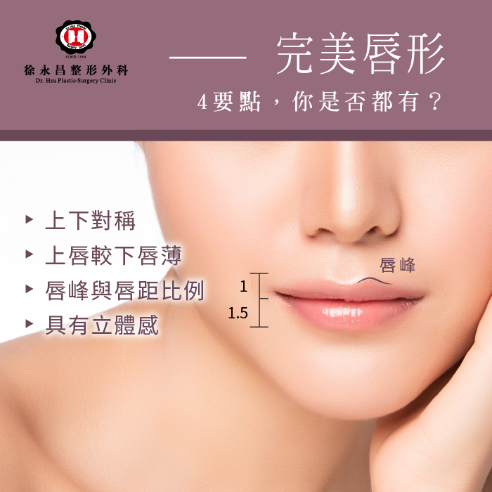 現在進入後疫情時代,政府放寬不戴口罩政策,而許多人更以全臉見人,以前消失的下半臉,現在可是看得清清楚楚,想要再靠口罩遮掩臉上的局部瑕疵,不如大方面對,趁未完全解隔前,找出自己的問題對症下藥。而口罩下的隱憂之一,唇部的形狀大小更是許多人心中的痛,多數東方人因為基因的關係,唇型多為上下唇厚薄度不均,或是不對稱,甚至肥厚等等的,究竟甚麼樣的唇型比例才完美?整形外科徐永昌來為你解答!